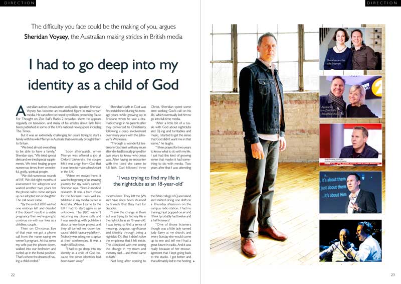 Direction Magazine is the official monthly magazine that carries all the latest news, inspiration and teaching from Elim Pentecostal Churches and the wider Christian community. There are also real-life stories from members and churches around the UK.