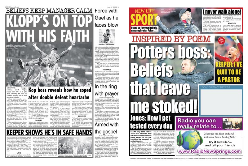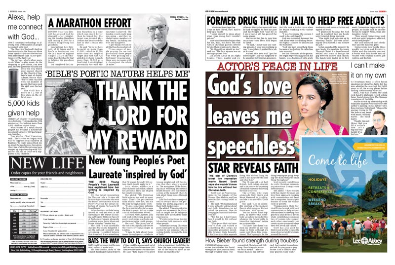 New Life is a contemporary Christian outreach newspaper packed with real-life testimonies, news and celebrity interviews, with sports at the back.