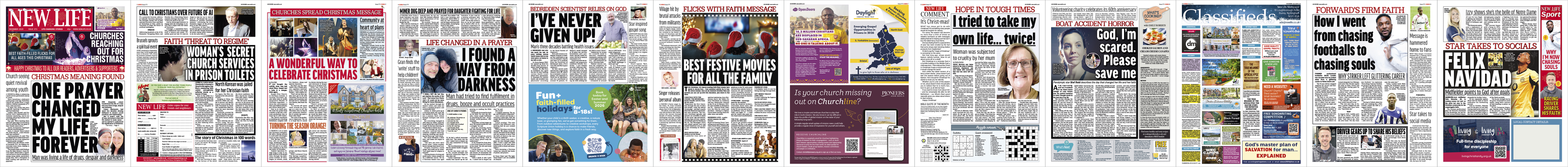 New Life is a contemporary Christian outreach newspaper packed with real-life testimonies, news and celebrity interviews, with sports at the back. Every month we report on the stories that separate the spiritual from the secular. It could be the testimony of a Hollywood superstar, a Premiership footballer, or someone who lives down your street.